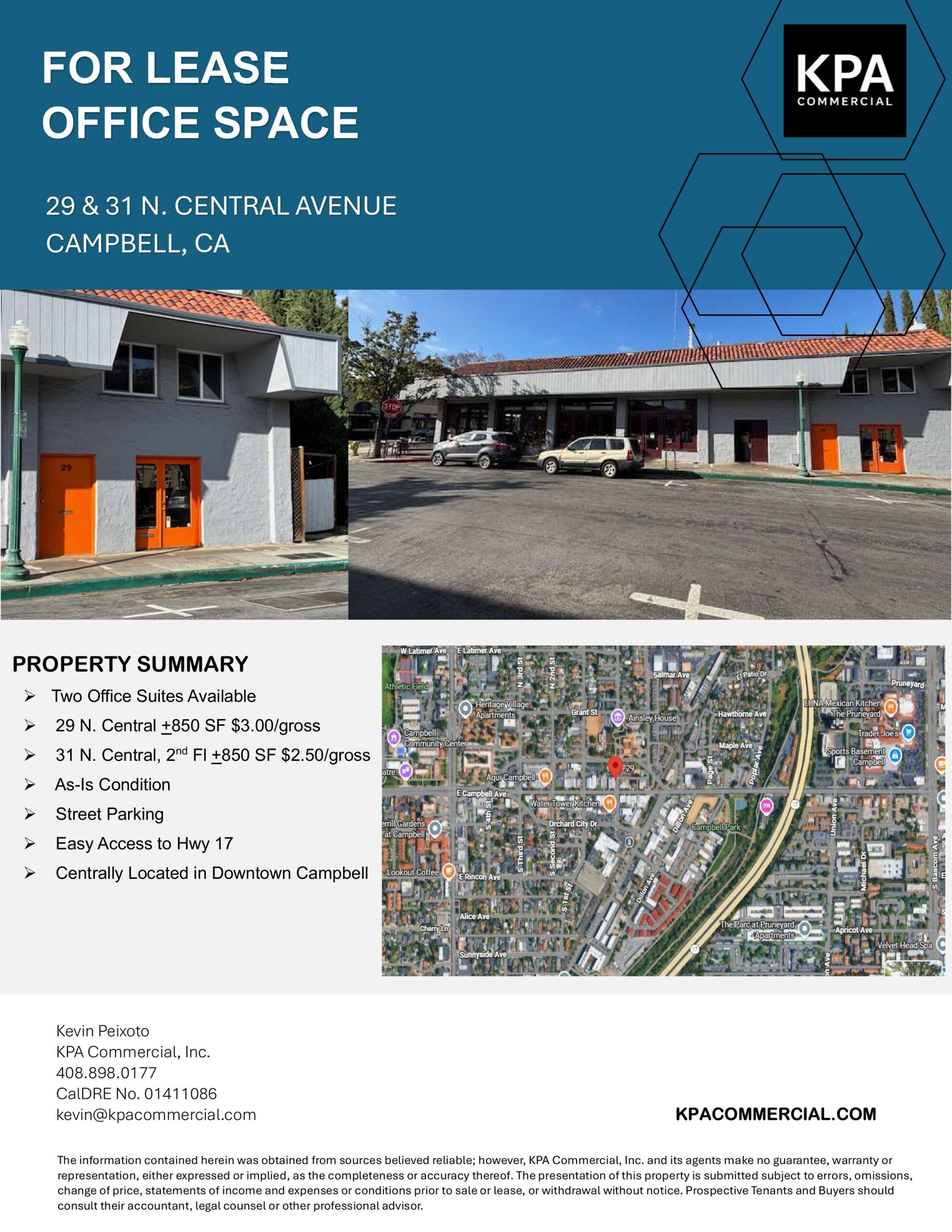 • 31 N. Central, 2nd Fl +850 SF $2.50/gross