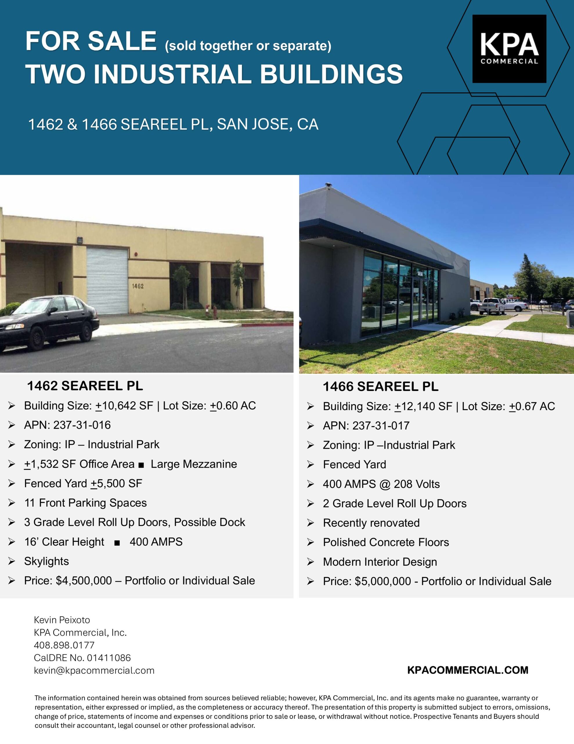 Sold as a Portfolio with 880 N. 10th Street, San Jose